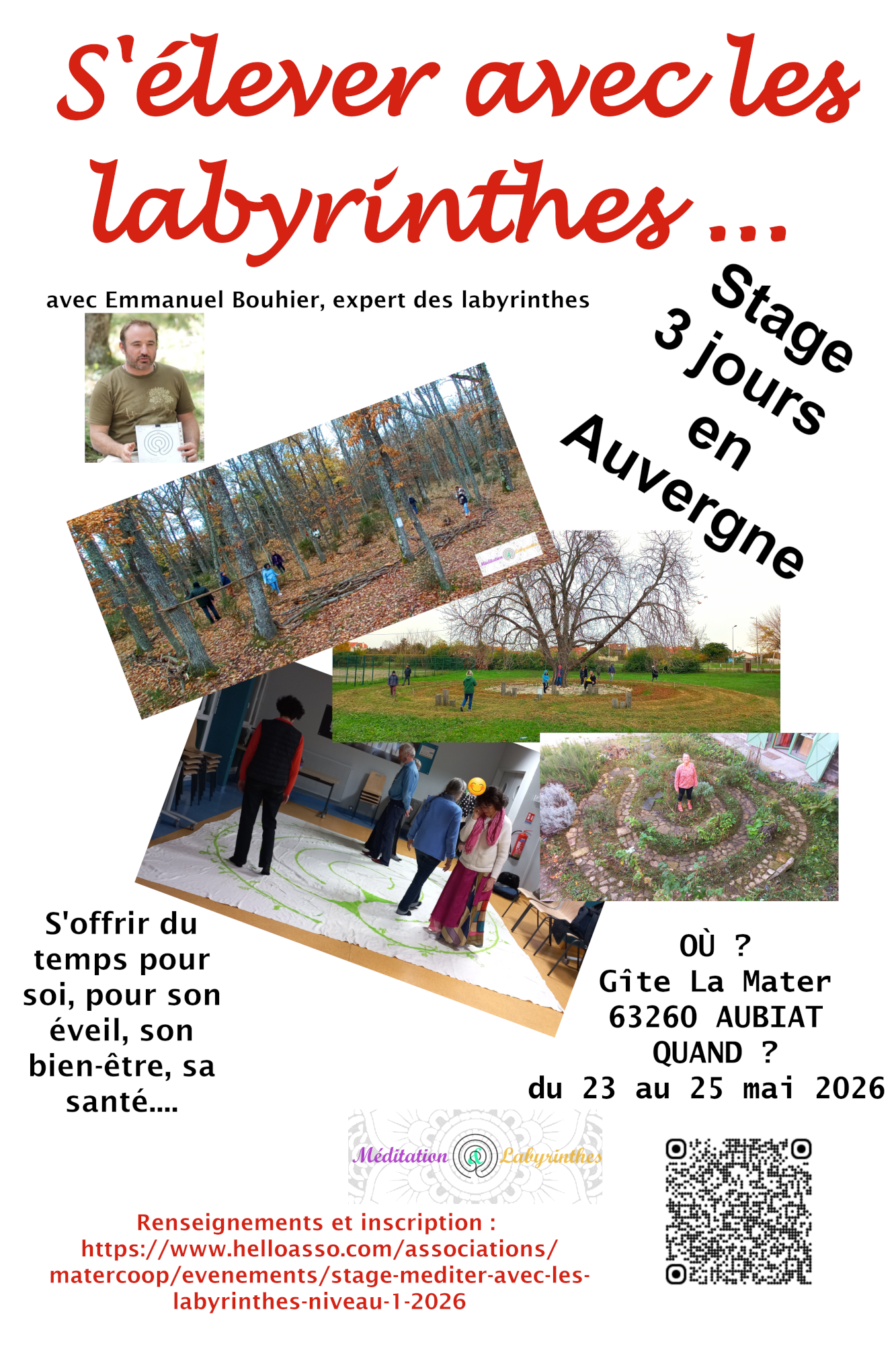 Pour s’inscrire au stage niveau 1 édition 2026 en Auvergne, c’est par là : https://www.helloasso.com/associations/matercoop/evenements/stage-mediter-avec-les-labyrinthes-niveau-1-2026